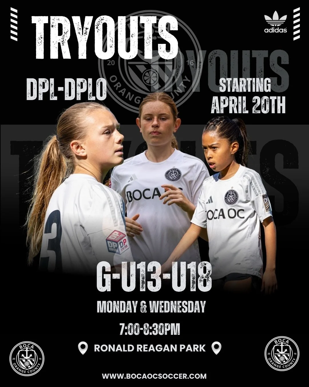 BOCA OC is currently holding tryouts for all age groups between 2020-2008.