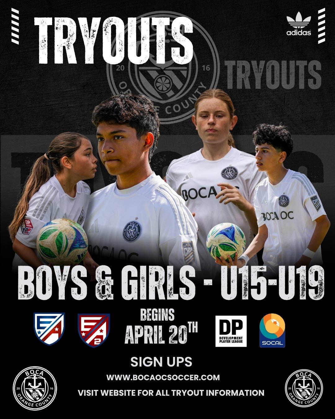 BOCA OC is currently holding tryouts for all age groups between 2020-2008.